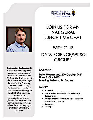 "Quantum Ready" talk at the University of the Witwatersrand, Johannesburg, South Africa. (online event)
