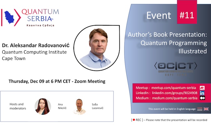 Dr. Aleksandar Radovanović, from Quantum Computing Institute, Cape Town, presents his book Quantum Programming Illustrated. (online event)