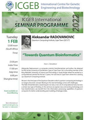 "Towards Quantum Bioinformatics" seminar at the International Centre for Genetic Engineering and Biotechnology. (online event)