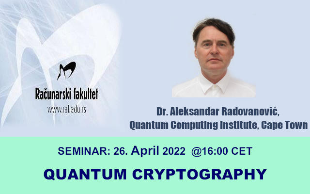 "Quantum Cryptography" seminar at the Computer Science University, Belgrade, Serbia. (online event)